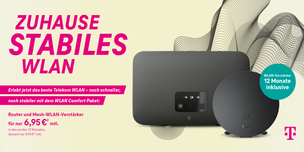 4) Im Aktionszeitraum 02.04.–30.06.2024 erhalten Kunden bei Abschluss eines neuen Mobilfunk-Vertrags mit einer Rufnummernmitnahme von einem anderen Mobilfunk-Anbieter und einer Mindestvertragslaufzeit von 24 Monaten in den Tarifen MagentaMobil mit oder ohne Endgerät (ausgeschlossen PlusKarten Tarife, Young Tarife, Special Tarife, DTAG-Tarife, for Friends Tarife, Corporate Benefits Tarife und Datentarife) 300€ auf ihrem Girokonto gutgeschrieben (z.B. MagentaMobil S ohne Smartphone für 39,95€/Monat, einmaliger Bereitstellungspreis 39,95€). Die Gutschrift wird nicht in Verbindung mit einer monatlichen Grundpreisbefreiung gewährt, wenn diese mehr als 3 Monate umfasst. Zum Erhalt der Gutschrift (nach Ablauf der Widerrufsfrist) ist bis 18.12.2024 eine Online-Registrierung über die MeinMagenta App (mit Klick auf Ihr Profil, „Cashback einlösen“) mit Vorlage der ersten Rechnung entsprechend den genannten Bedingungen erforderlich. Alternativ kann die Registrierung überhttps://www.telekom.de/cashback-einloesen erfolgen. 2) Monatlicher Grundpreis beträgt 69,95 € (mit Smartphone), Bereitstellungspreis 39,95 €. Mindestlaufzeit 24 Monate. Ab einem Datenvolumen von 40 GB wird die Bandbreite im jeweiligen Monat auf max. 64 KBit/s (Download) und 16 KBit/s (Upload) beschränkt. Ein Angebot von: Telekom Deutschland GmbH, Landgrabenweg 151, 53227 Bonn.